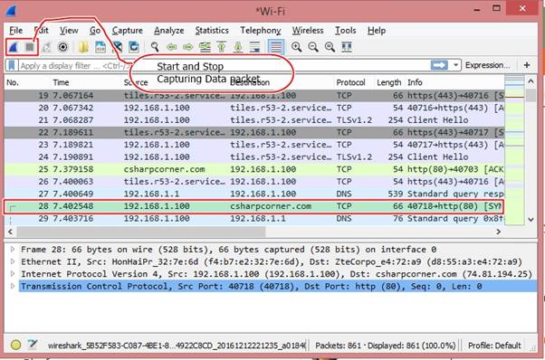 I Googled this Website – www.csharpcorner.com – I have no idea about the network and this Website is used. We will see how Wireshark helps us in determining the network information.