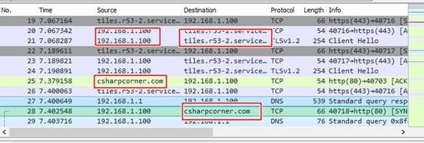 We will take packet number 28 that is for my search – www.csharpcorner.com - question is how do I know that the packet is for csharpcorner only? For this, you have to add one more preferences by moving to edit preferences Name and Resolution Check –“Resolve Network address”. Now, you can find the destination address is now showing you the IP addresses and its domain name too.