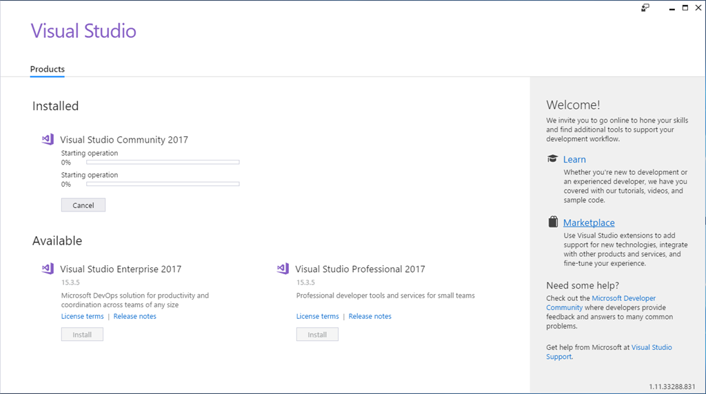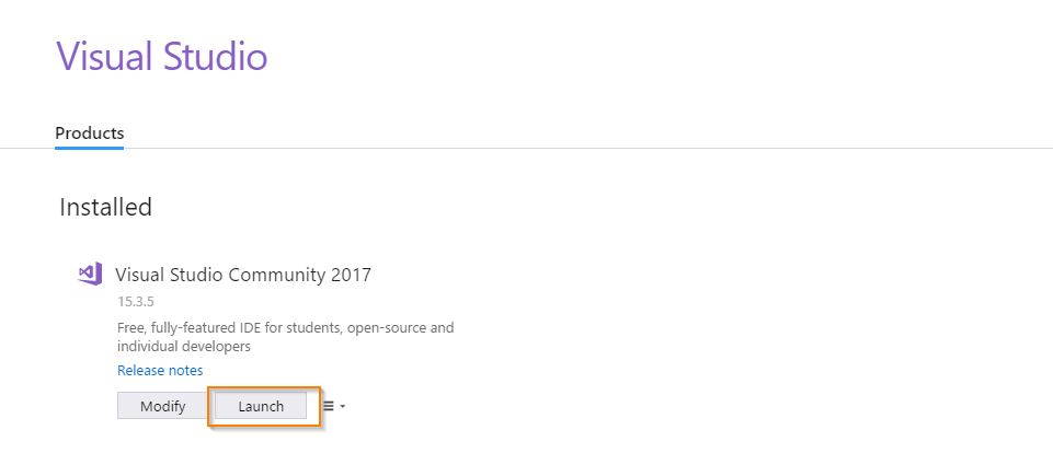 After successfully updated Visual Studio Community 2017 version 15.3.5. Then Click Launch button