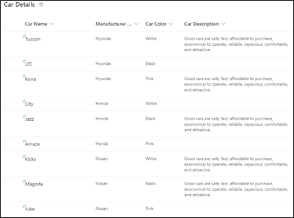 Once we added our filters and click on save, you will now see only those records where the Car has a description against it.