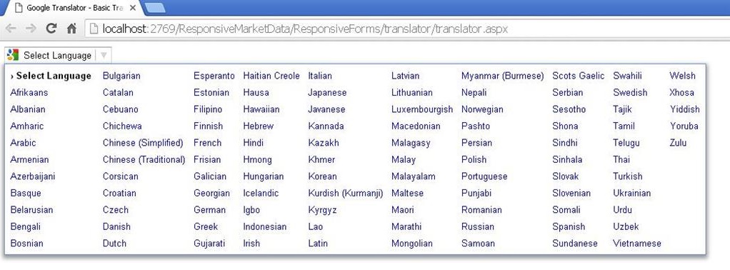 While running page, shown above, in the Browser, Google automatically creates a dropdown structure at the top of the page, inside div provided by us with ID "google_translate_element".