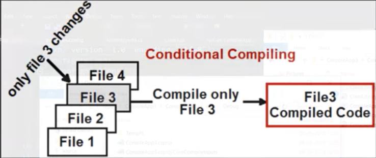 Now assume that we have multiple files in our project. Let's say after compilation if you make some changes on a particular file, then the only particular file should have been properly compiled. The C# compiler only compiles modified files instead of all files with help of tracking the obj folder. Please check the below snapshot.