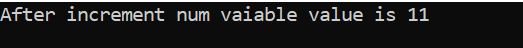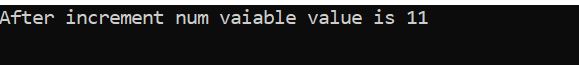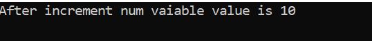 - Console.WriteLine("After increment num vaiable value is " + num.ToString());