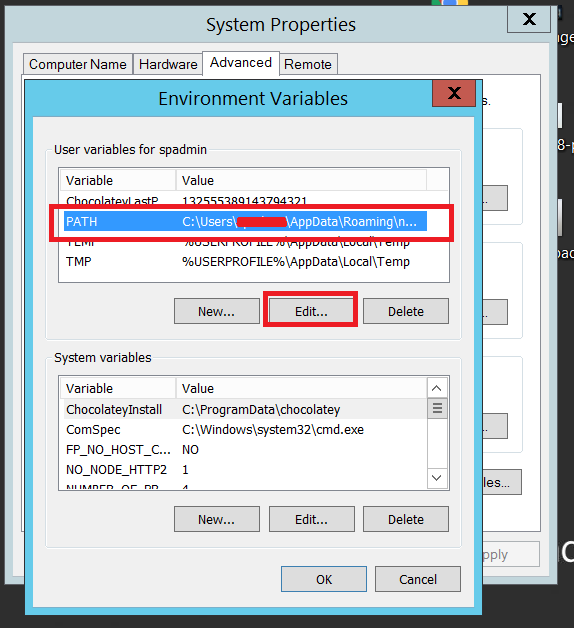 On clicking Environment Variables, it will open another popup. Now select PATH variable and click on Edit button.