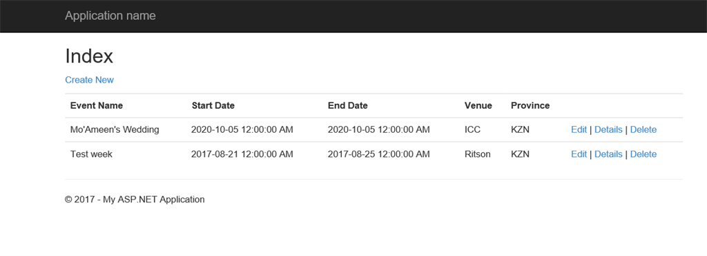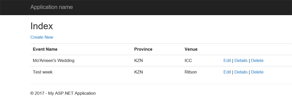 Now we create the ViewModel, this table combines the properties of all the other tables, only the values that you would like to join. Now we scaffold the Events and Locations Table as controllers with Entity Framework. Once we have the CRUD for these two tables we enter some dummy data so that we have data in our tables to display in our joined table.