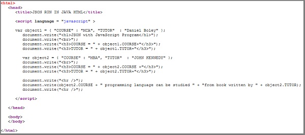 - document.write("<h1>JSON with JavaScript Program</h1>");