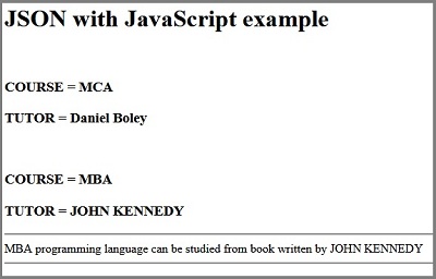 The following example shows how to use JSON to store the information related to courses based on their name and tutor.