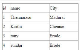 Now, DataGrid table shows the database value table format. It is similar to whatever we did in DataGrid. Afterwards, configure GridView with Data configsource and the output will look, as shown below.