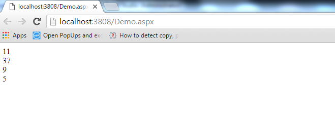 - Response.Write(string.Format("{0} </br>", i));