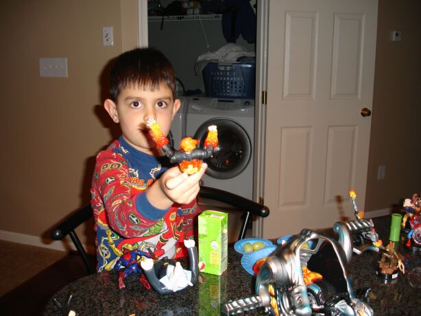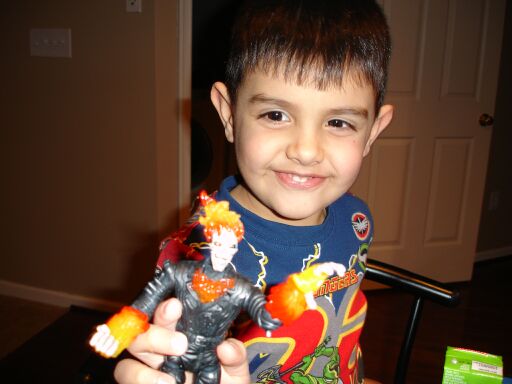 Here are some pics of Neel with his Ghost Rider toys: