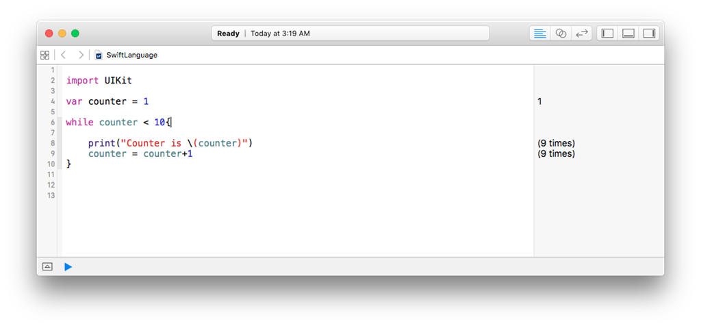 Swift recommends to use for-each (for in) loop instead of for loop. For-each loop is most useful when you are iterating collection type (Array or Dictionary). At present, we are just dealing with the syntax of loops.