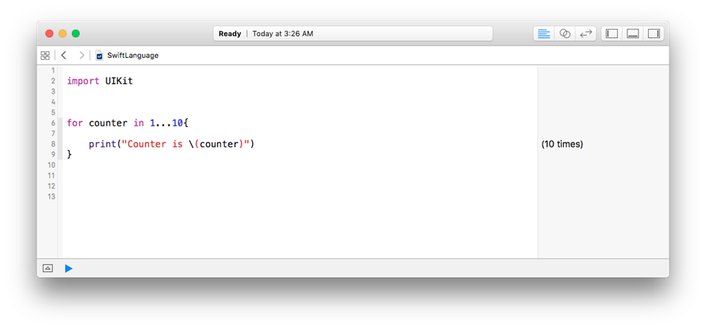 There is nothing new in for loop syntax apart from the braces. Swift doesn’t use increment/decrement operator(++/--) as Swift doesn’t belong to C Language.