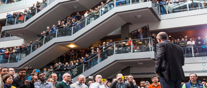 Satya talks about the culture and making Microsoft the best place to work. If a company focuses on its people, the company has only one way to move – up.