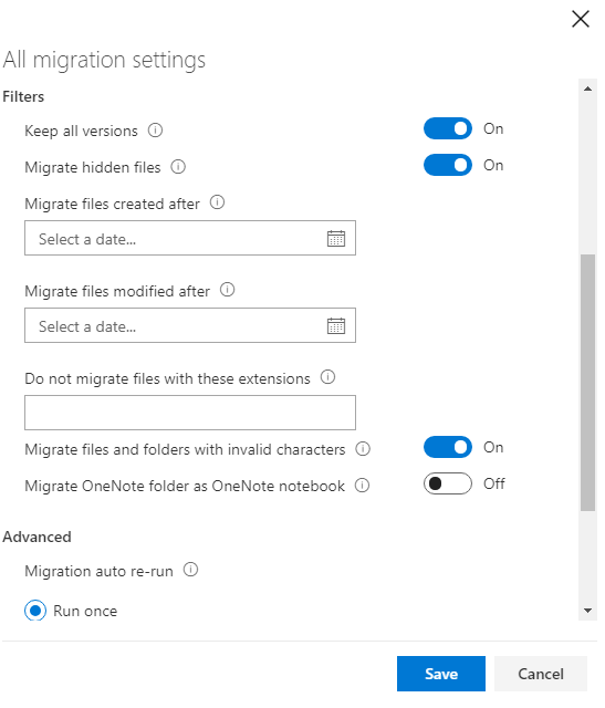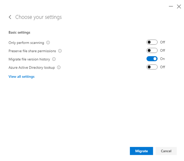 Migrate File version history is selected by default.