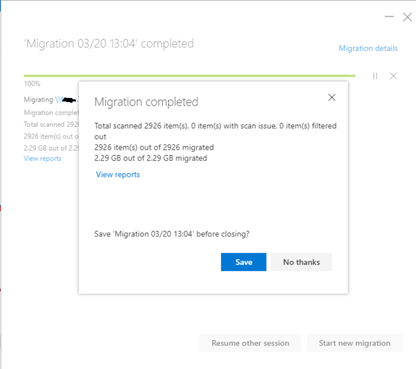Once migration is complete, you can click View reports to view Summary and FailureSumary report.