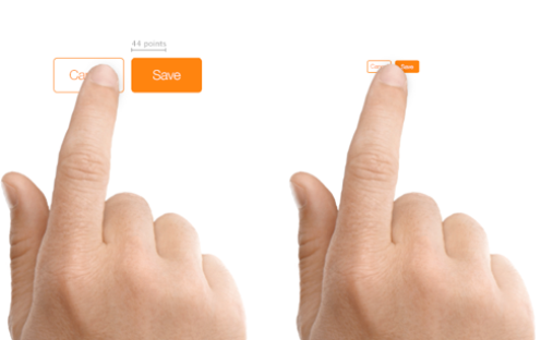 - IOS recommends creating a button that measures at least 44 points x 44 points.