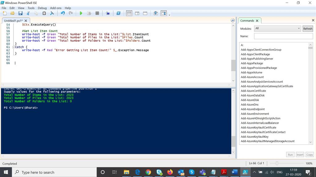- Write-host -f Green "Total Number of Files in the List:"$Files.Count