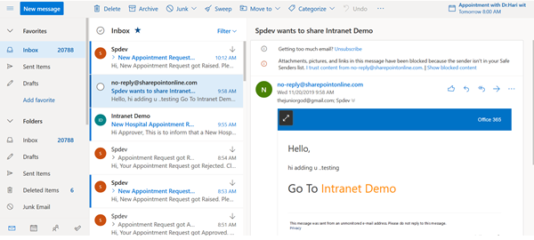 4. You will receive a notification email in your Outlook or Webmail, as shown below.