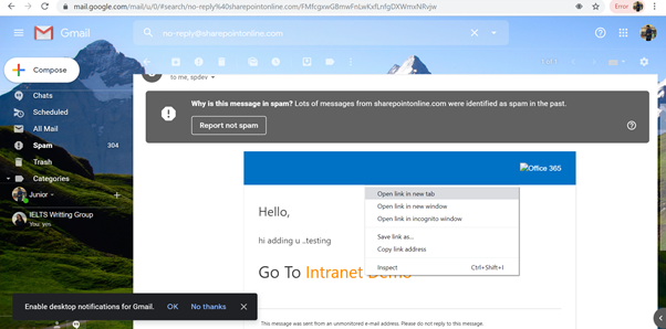 Then, the external user has to open the mailer from their personal account. Follow the steps as shown in the below snapshots.