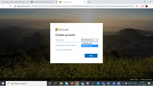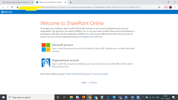 6. After creating your own Hotmail/Outlook account or signing in with your already existing Hotmail/Outlook account, you can access the modern site application and content seamlessly. Happy coding!