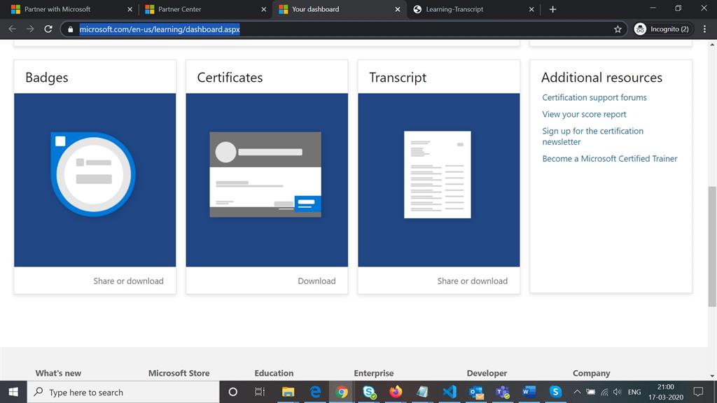 Check for all your Badges, Certificates & Transcripts for a quick check.