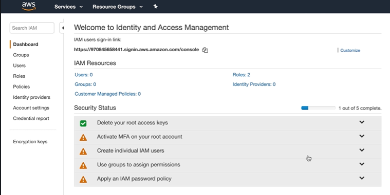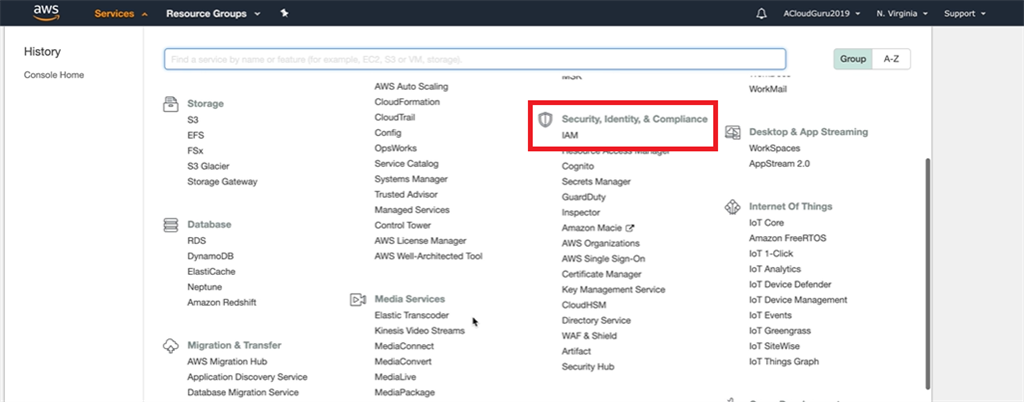 Go to AWS Management Console and select IAM service under the Security, Identity and Compliance section. Please check the below figure.