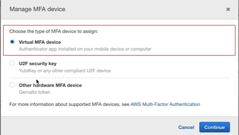 Click on the ActivateMFA button and here you will get the three different types you've got virtual MFA. Please check the below figure.