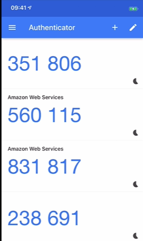 Now what I would do before you open that app is to take a photo of this QR code and store it somewhere safe. That means that if you lose your multi-factor authentication device or if you lose your phone for example. So long as you have access to this QR code you can always re-enable MFA and you don't have to worry about contacting the AWS support team. Once you've installed Google Authenticator on your phone you'll see a screen that looks similar to this you might not have any authentication codes in there.