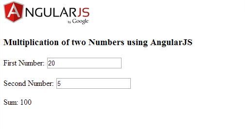 - <h3>Multiplication of two Numbers using AngularJS</h3>