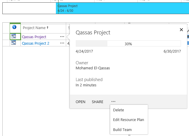 Project ellipsis In Project Server 2016, specifically in Project Center, you can easily show the project information summary like
