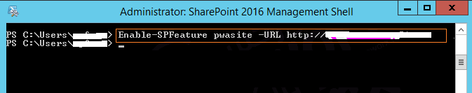 - Enable-SPFeature pwasite -URL http://SiteCollectionURL/PWA
