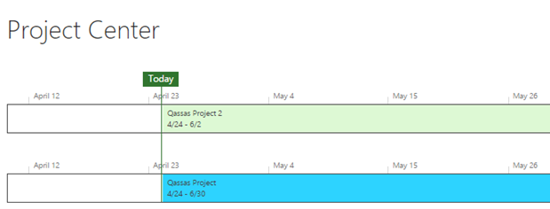 The timeline is a graphic design showing the project summary as a long bar labeled with dates, the project managers are using the timeline to easily compare between multiple projects at one place.