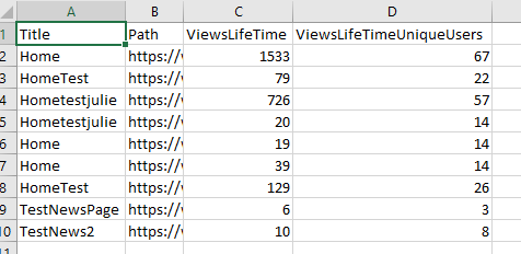 - $outputline = '"' + $result["Title"] + '"' + "," + '"' + $result["Path"] + '"' + "," + $result["ViewsLifeTime"] + "," + $result["ViewsLifeTimeUniqueUsers"]
