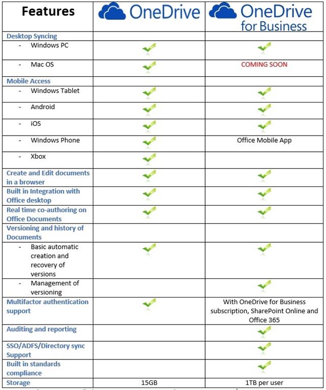 A Quick Overview of Comparison between OneDrive and OneDrive for Business for a deeper understanding is shown below: