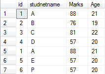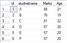 - Create table class_A(id int,studnetname varchar(50),Marks int,Age int)