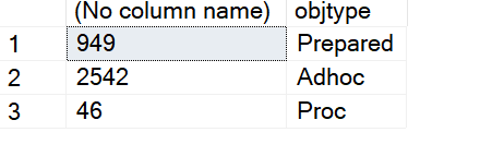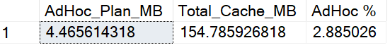 By looking at these two result sets, you can see that although there are 2,542 Ad Hoc query plans in the cache. They are consuming a small percentage of the total cache, only 2.8%.