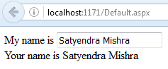 As soon as we change the value in the text box, statement "Your name is ______" is also changed. See the screenshot, given below-