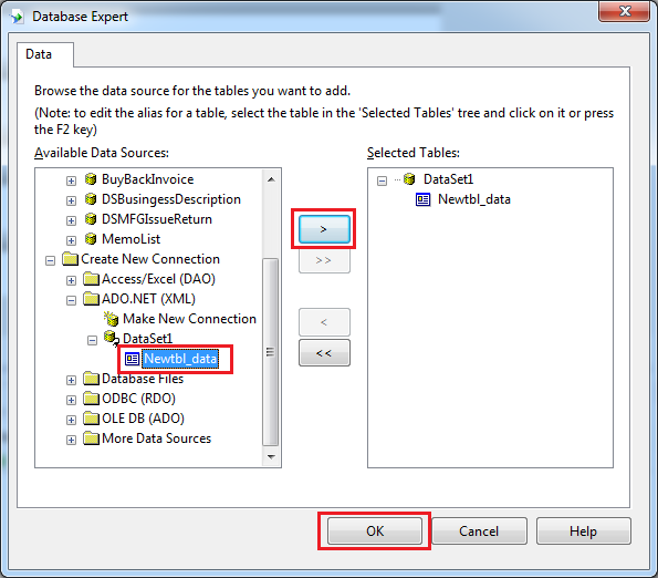Open created CrystalReport from Solution Exploler and follow the screen.