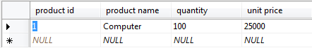 Now, create database, add table, and enter some data on created table where product id is the primary key (No Duplication).