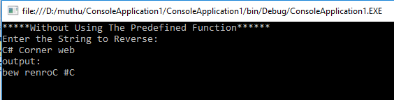 - Now, I am going to explain how to print a string or letters in reverse without using the predefined function in the C# programming language.