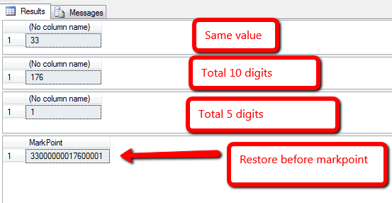 - WITH STOPBEFOREMARK = 'lsn:33000000017600001'