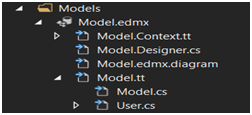 Create an empty MVC project, and then add an ado.net Entity model using the table User. Then build the solution.