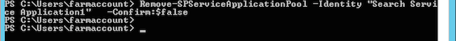 - Remove-SPServiceApplicationPool -Identity "Search Service Application1" -Confirm:$false
