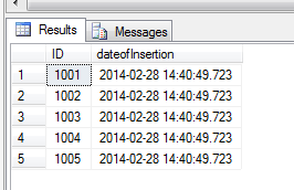INSERT INTO tablename(dateofInsertion) VALUES(GETDATE()),(GETDATE()),(GETDATE()),(GETDATE()),(GETDATE())