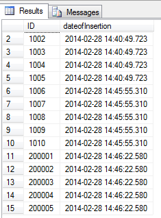 Step 4: After Resetting the identity value of the existing table, the result looks like this: