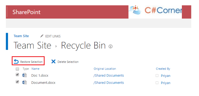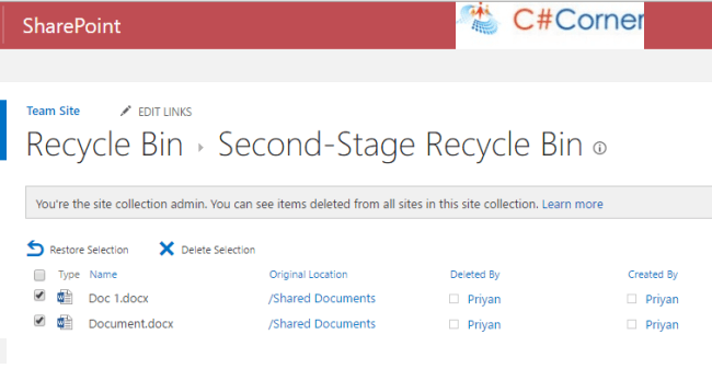 Summary - Thus, we saw how to restore documents from Site and Site Collection level recycle bin in SharePoint Online.