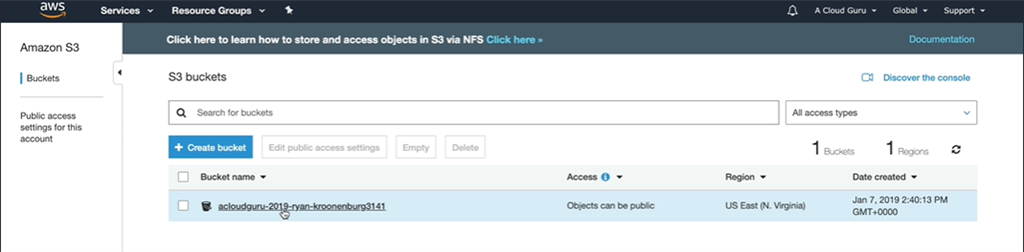 Let's go ahead and have a look at how we can do this in the AWS console. First, go to your AWS management console and click on S3 under storage then create your bucket. Please check the below figure where we can see the S3 bucket.