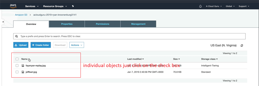 The next step is to click on the bucket so that you can see your individual objects or data. Please check the below figure.