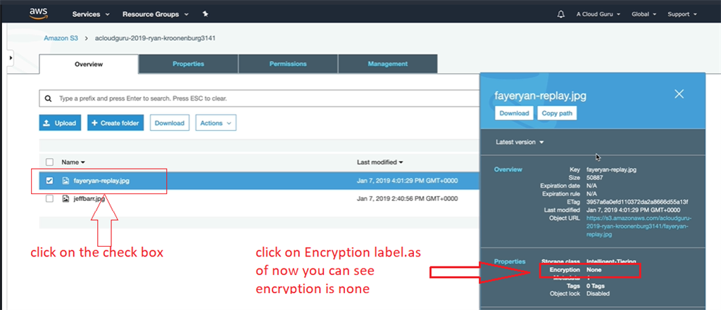 After enabling encryption, please check the object properties. Check the below snapshot in which we can see encryption details.