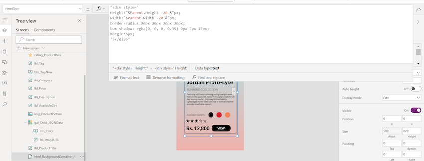 Html control is used inside the main gallery to represent a card design with box shadow property.